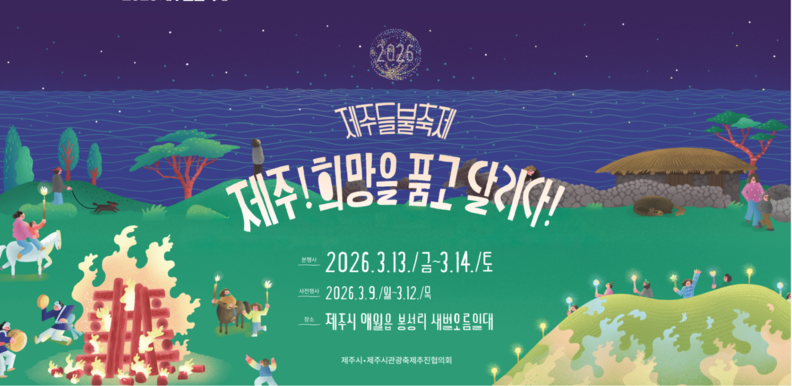 [뉴스트래블=차우선 기자] 제주의 대표 봄 축제인 ‘2026 제주들불축제’가 제주시 애월읍 새별오름 일대에서 성황리에 진행되고 있다. 올해 축제는 ‘제주, 희망을 품고 달리다!’를 주제로 지난 9일부터 14일까지 열리며, 전통과 현대가 어우러진 다채로운 프로그램으로 국내외 관광객들의 발길을 사로잡고 있다.