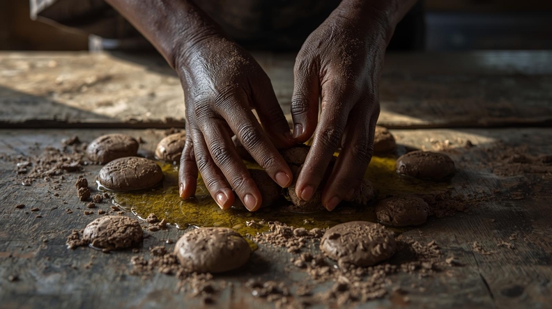 아이티 머드쿠키는 고운 카올린 점토, 식용유, 소금, 물을 섞어 햇볕 아래 바짝 말려 만든다. 카메라에 담기는 모습만 보면 쿠키, 혹은 빵처럼 보인다. 색깔은 흙빛이지만 표면이 매끈해 얼핏 건강식 과자 같기도 하다. 하지만 입에 넣는 순간 이 음식이 가진 목적이 전혀 다름을 깨닫는다. 고소함이라곤 찾아보기 힘들고, 들큰하면서도 모래알 씹히듯 입안이 거칠어진다. 영양가 역시 거의 없다. 위산을 흡수해 일시적인 포만감을 주는 것이 머드쿠키의 유일한 기능이다. “먹기 위해 먹는 음식이 아니다.” 현지인들은 종종 이렇게 말한다.