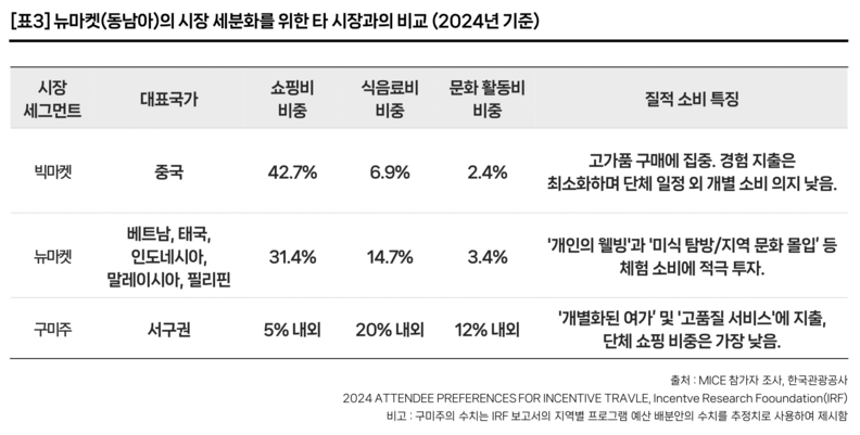 전문가들은 이를 ‘High-Touch 경험 경제’의 수요와 공급 불일치로 진단한다. 동남아 관광객은 단발적인 고액 소비보다 체험의 질을 중시하며, 만족도가 재방문 의사와 미래 고객생애가치(Customer Lifetime Value)로 직결된다. 따라서 한국 인센티브 관광 산업은 수도권 집중형 쇼핑 모델에서 벗어나, 지역 분산형 웰니스·문화 체험 프로그램을 강화해야 한다는 목소리가 커지고 있다.