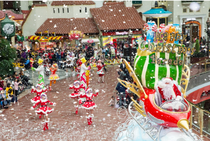 실내 공간인 어드벤처는 하나의 완결된 세계다. 거대한 유리 돔 아래 형성된 이 공간은 외부와 단절된 채 독립적으로 작동한다. 자연광이 들어오지만 시간의 흐름은 느껴지지 않고, 조명과 음악, 사람의 움직임이 또 다른 리듬을 만든다. 중앙 광장을 중심으로 놀이기구와 상점, 공연 공간이 입체적으로 연결되며, 방문객은 방향을 정하지 않아도 자연스럽게 순환 동선을 따라 움직이게 된다.