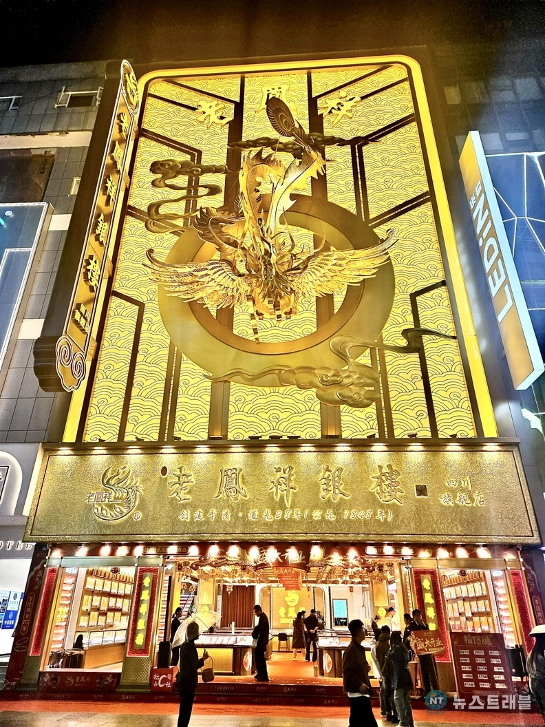1848년 창립된 ‘老凤祥银楼(라오펑샹 은루)’는 봉황과 용의 조형물이 장식된 웅장한 외관으로 주목받는다. 180년 넘는 역사를 지닌 중국 대표 보석 브랜드로, 전통과 현대를 잇는 공간이다.