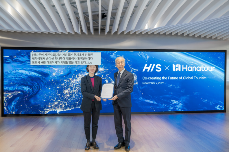 [뉴스트래블=박민영 기자] 하나투어는 일본 대표 여행사 H.I.S.와 지난 7일 일본 현지에서 전략적 파트너십(MOU)을 체결했다고 밝혔다. 이번 협약은 양사의 글로벌 네트워크와 운영 인프라, 디지털 역량을 결합해 ‘차세대 관광 공동체’를 구축하고, 아시아를 넘어 글로벌 관광 시장을 선도하기 위한 협력이다.