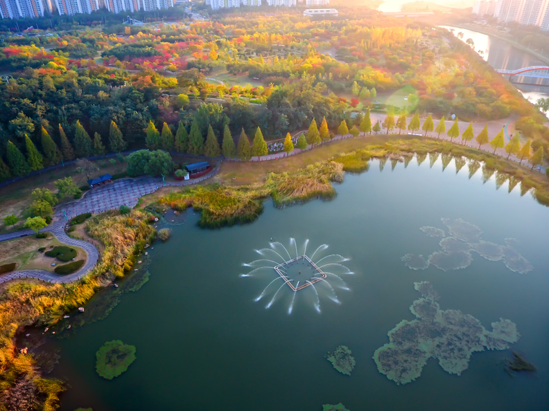 호수공원은 안산천과 화정천이 합류하는 지점에 위치해 물고기와 철새를 관찰할 수 있는 갈대습지를 품고 있다. 이는 호수공원이 단순히 '보는 공원'이 아니라, 도심의 수질을 정화하고 생물 다양성을 유지하는 '살아있는 생태계'라는 점을 증명한다. 8차선 도로를 사이에 두고 두 개의 공원으로 나뉘어 보행 육교로 연결된 구조는, 현대 도시의 인공성과 자연의 기능이 교묘하게 조화된 K-도시 계획의 미스터리를 보여준다.