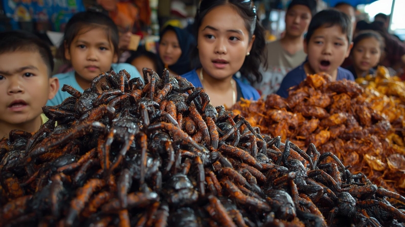 타란툴라는 사실 매우 영양가가 높은 식재료다. 단백질 함량이 높고 지방은 적으며, 필수 아미노산과 미량 영양소도 포함한다. 캄보디아 북서부 스콩(Skuon)은 이 음식의 본고장으로 불린다. 거리 노점마다 크고 털북숭이한 거미가 산처럼 쌓여 있고, 튀겨지는 순간 특유의 고소한 향이 거리를 가득 메운다.