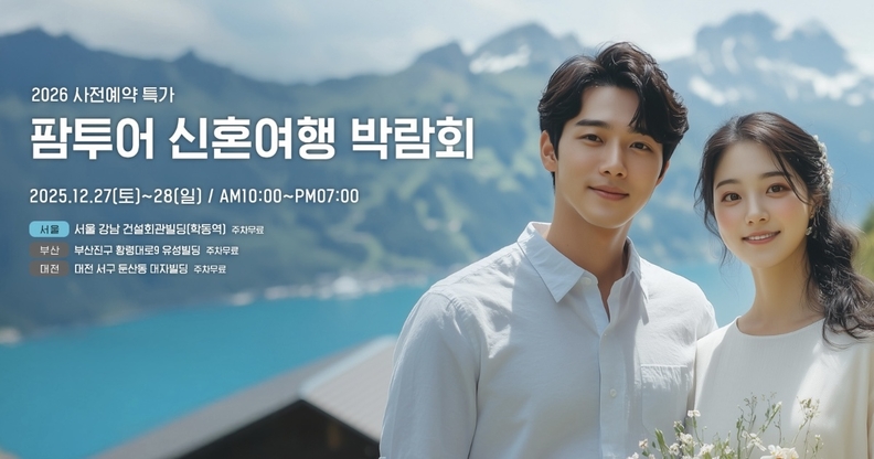 [뉴스트래블=박민영 기자] 허니문 전문 여행사 팜투어가 연말 예비부부들을 위한 ‘2025 마지막 허니문 박람회’를 연다. 행사는 오는 27~28일 서울 본사·부산·대전에서 동시에 개최되며, 방문만 해도 무료 주차권과 시간대별 사은품이 제공된다.
