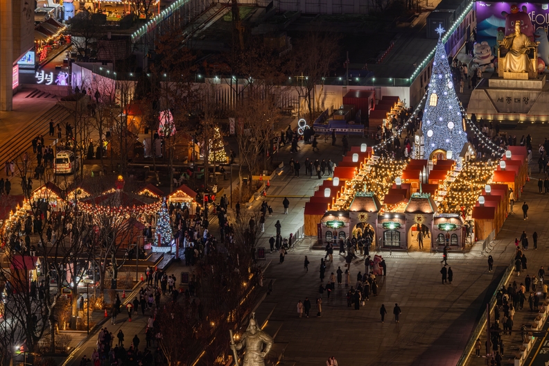 광화문광장 대형 트리와 인터랙티브 포토존, 글로벌 브랜드 협업 이벤트까지 더해져 서울의 대표 겨울축제로 자리매김한 이번 마켓은 31일까지 이어진다.