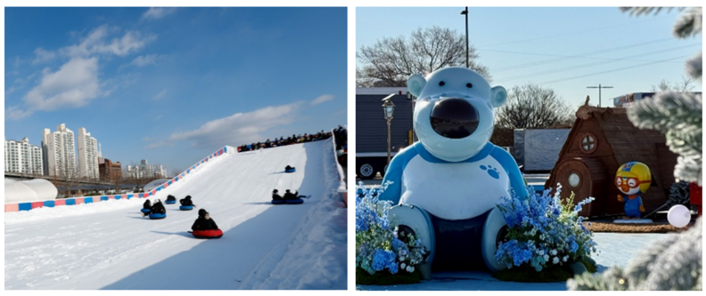 눈썰매장 곳곳에서는 어린이들을 위한 ‘뽀로로 싱어롱쇼’와 ‘캐릭터 퍼레이드’가 열려 한층 흥겨운 분위기를 더한다. 또한 추위를 피해 편안히 쉴 수 있도록 수백 명을 동시에 수용할 수 있는 대형 푸드존을 마련해 방문객들의 편의를 높였다.