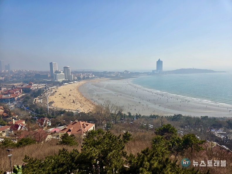 [뉴스트래블=박성은 기자] 붉은 지붕의 물결 너머로 푸른 바다가 펼쳐진다. 언덕 위에 서자 도시와 해안이 한눈에 펼쳐진다. 사진은 중국 산둥성 칭다오의 대표 전망대인 소어산에서 내려다본 풍경이다. 춘절 연휴를 맞은 도시가 맑은 햇살 아래 고요하게 숨을 고르고 있다.