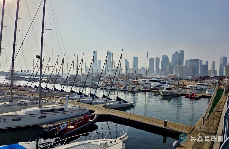[뉴스트래블=박성은 기자] 중국 산둥성 칭다오의 해안은 과거와 현재가 가장 역동적으로 맞닿는 공간이다. 그 중심에 자리한 곳이 바로 칭다오 올림픽요트경기장이다. 잔잔한 수면 위에 빼곡히 들어선 요트 마스트들은 마치 숲처럼 하늘을 향해 곧게 뻗어 있다. 그 뒤로는 유리 외벽의 고층 빌딩들이 겹겹이 서 있으며, 바다와 도시가 한 프레임 안에서 공존한다.