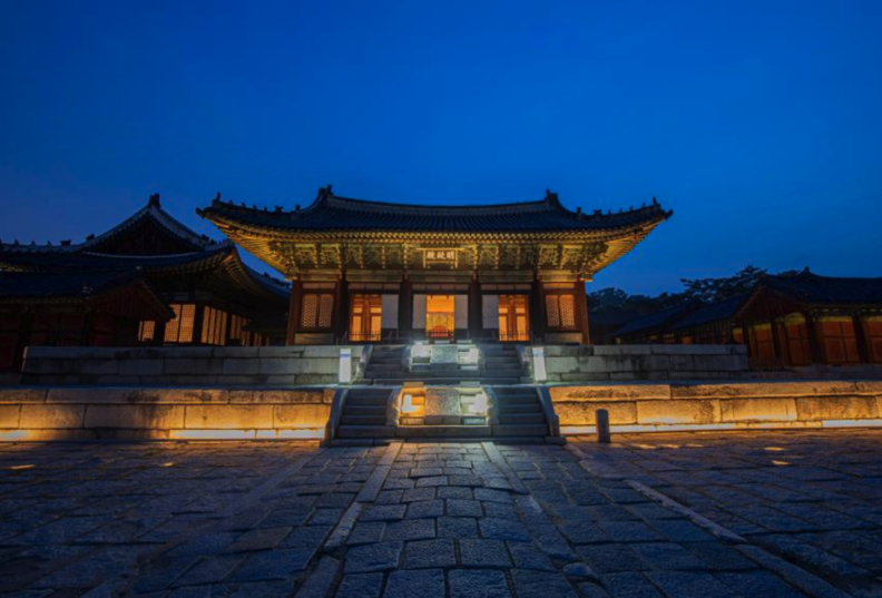 정전인 명정전은 조선 궁궐 가운데 현존하는 가장 오래된 정전이다. 규모는 크지 않지만, 오히려 그 절제가 기품을 드러낸다. 기단 위에 단정히 올라선 전각, 마당에 놓인 품계석, 단청의 색감은 위엄을 말하되 과장하지 않는다. 명정전은 이 궁궐의 성격을 압축해 보여준다. 권위는 있지만, 날카롭지 않다.