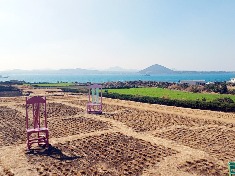 계절마다 다른 얼굴을 보여주는 ‘우도정원’은 진입로에서 피는 유리호프스, 보리, 유채꽃은 봄의 절정을 터트린다. 유채꽃은 우도바다에서 바람이 불자 향기가 코끝을 간지러울 지경에 이른다. 탁 트인 우도가 조망되는 ‘우도정원’에서의 꽃들은 사방으로 널리 퍼진다.
