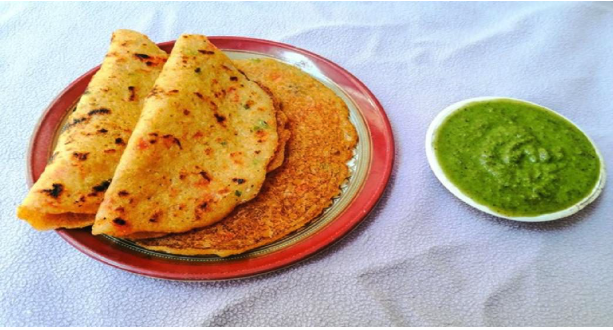 또 다른 대표적인 간식은 칠라다. 병아리콩 가루로 만든 얇은 팬케이크 형태의 요리로, 양파나 향신료, 채소를 섞어 철판에서 구워낸다. 겉은 바삭하고 속은 부드러워 간단한 식사나 길거리 음식으로 인기가 높다. 인도의 많은 도시에서 아침 거리 음식으로 쉽게 만날 수 있는 요리다.