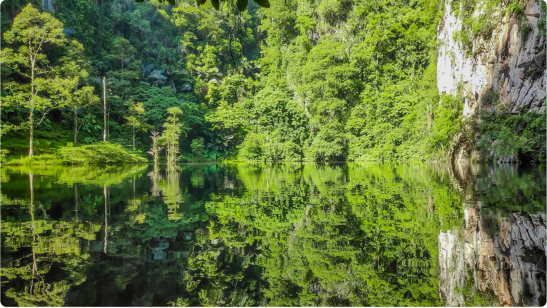 그 결과 호수 위에는 또 하나의 풍경이 생긴다. 석회암 절벽, 숲, 하늘이 그대로 물에 반사되며 마치 거대한 거울이 놓인 듯한 장면이 만들어진다. 특히 아침이나 늦은 오후에는 빛이 부드럽게 떨어지면서 물속 풍경이 더욱 선명해진다.