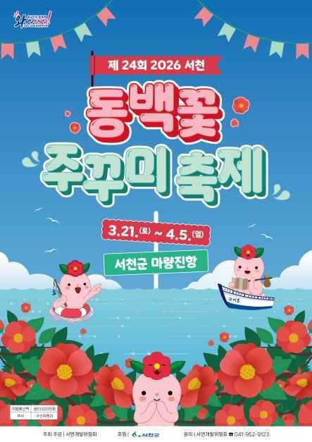[뉴스트래블=김남기 기자] 제24회 서천 동백꽃 주꾸미 축제가 오는 21일부터 4월 5일까지 충남 서천군 마량진항 일원에서 열린다. 이번 축제는 봄철 대표 해산물인 주꾸미와 붉게 피어난 동백꽃을 동시에 즐길 수 있는 지역 대표 행사로, 관광객들의 발길을 모을 전망이다.