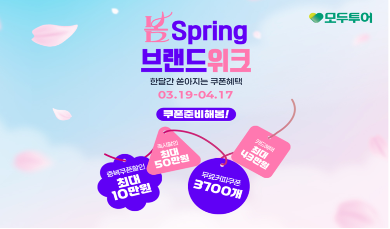 [뉴스트래블=박민영 기자] 모두투어가 봄 시즌을 맞아 19일부터 4월 17일까지 한 달간 전사 프로모션 ‘Spring 브랜드위크’를 진행한다.